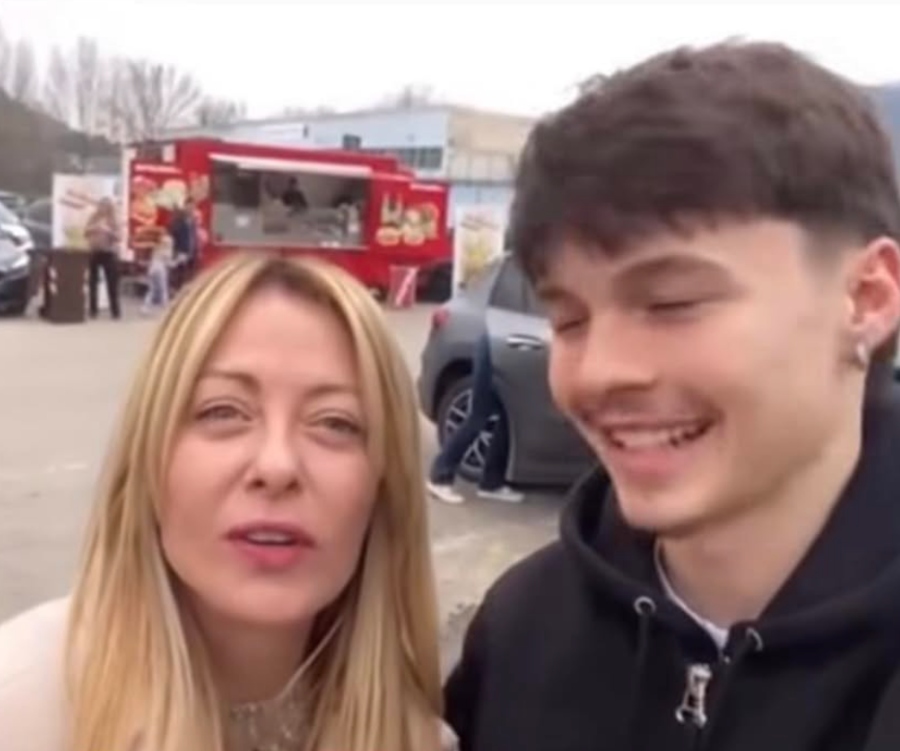 Proprio mentre si prepara lo scatto, il giovane sorprende la premier con una dichiarazione diretta: al referendum sulla giustizia voterà “No”. Una frase pronunciata senza provocazioni evidenti, ma che arriva in un momento del tutto inaspettato.