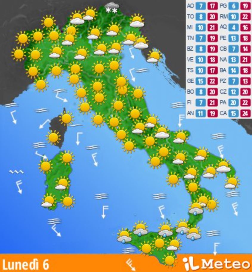 È il preludio alla classica Ottobrata, tradizione romana di fine vendemmia che oggi, in termini meteorologici, descrive giornate serene, asciutte e calde, quasi estive. Temperature in salita, cielo terso, sole deciso: da Roma a Napoli, da Firenze a Palermo, si potranno raggiungere picchi di 24-25 °C, regalando a molti italiani un fuori programma di stagione che sa di vacanza tardiva.