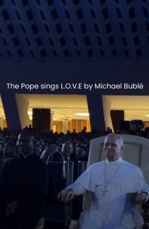 Bublé ha alternato brani iconici del suo repertorio, come “L.O.V.E.”, a melodie natalizie e alla suggestiva esecuzione dell’“Ave Maria” di Schubert, richiesta personalmente da Papa Leone. Un momento di grande intensità, reso ancora più vibrante dall’arrangiamento orchestrale pensato per l’acustica dell’Aula Paolo VI, che ha avvolto il pubblico in un’atmosfera di raccoglimento. Ma c’è un dettaglio, ripreso con discrezione da chi era presente al concerto, che ha reso il tutto una vera magia.