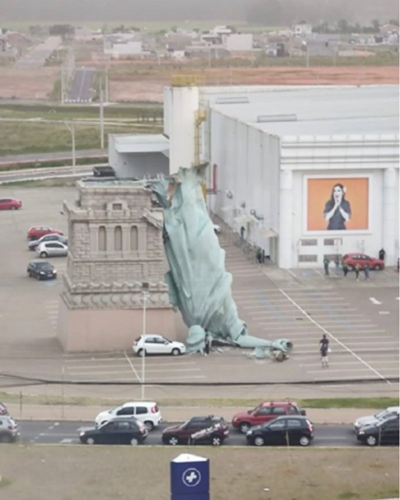 Il vento della tempesta non guarda in faccia a nessuno, nemmeno ai simboli del potere e della grandezza commerciale. A Guaíba, nel sud del Brasile, una giornata apparentemente ordinaria si è trasformata in un set cinematografico da disaster movie quando la maestosa replica della Statua della Libertà è letteralmente colata a picco. Un evento che ha lasciato i testimoni senza fiato, mentre i cellulari riprendevano l’incredibile scena del colosso che si piegava sotto la furia della natura.